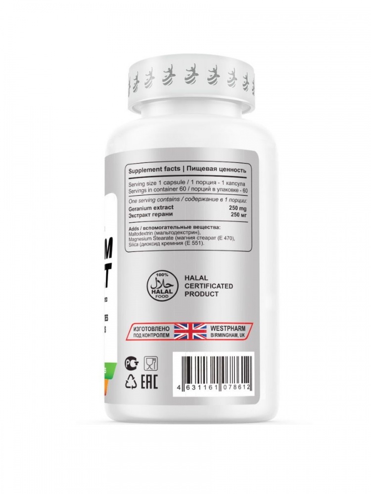 Интернет-магазин Body-Pit.Life предлагает купить Энергетик WestPharm Vegan Line Geranium Extract 250 мг 60 капсул в Нерюнгри.
