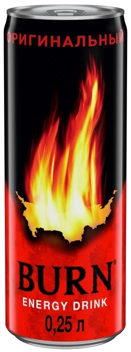 Напиток Burn энергетический Оригинальный 250мл – это безалкогольный тонизирующий напиток с мягким и освежающим вкусом, в котором ощущаются яркие вишневые нотки. Он содержит таурин, кофеин, витамины группы В и экстракт гуараны, благодаря чему снижает сонливость, помогает взбодриться, стимулирует умственную деятельность, повышает скорость реакции, активизирует внутренние ресурсы организма. Энергетические напитки весьма популярны среди студентов, людей, живущих в клубном ритме, водителей и всех, кому приходится трудиться в ночное время. Компактную, стильно оформленную железную баночку удобно брать с собой – она не займет много места в сумке или рюкзаке.