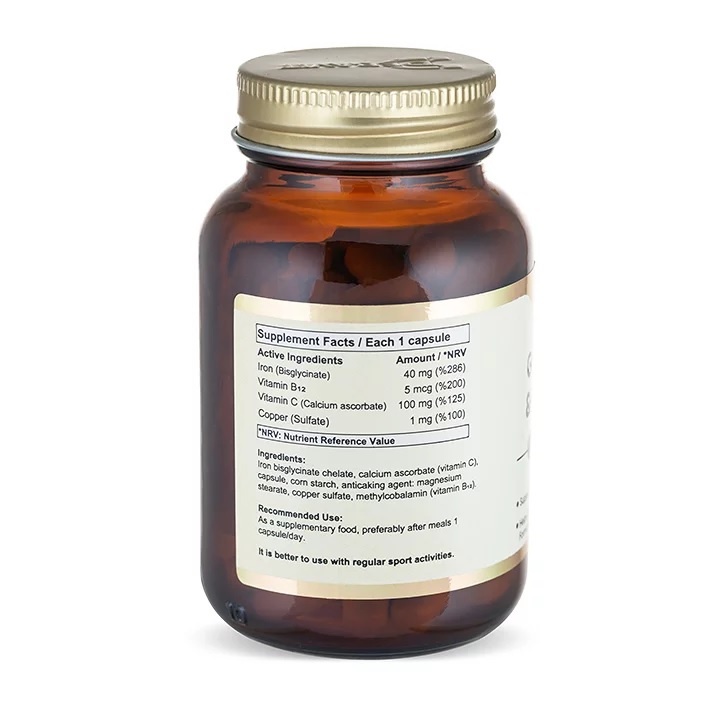 Мы создали этот продукт чтобы помочь восполнить дефицит Железа наиболее эффективно и с пользой для всего организма. Используя 3 дополнительных ингредиента: Витамин Б12, Витами Ц и Медь, мы гарантируем наилучшую усвояемость. Используя эту добавку вы гарантируете поддержания уровня Железа в крови, улучшение иммунитета и обменных процессов с кислородом и углекислым газом в тканях.