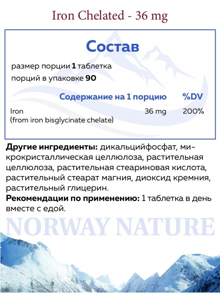 Интернет-магазин Body-Pit.Life предлагает купить Витамины Norway Nature Iron Chelated 36 мг 90 таблеток в Нерюнгри.