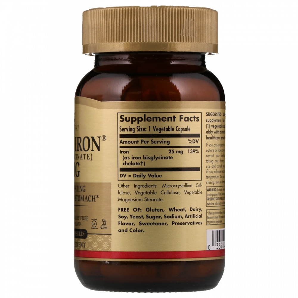 Железо является важным компонентом гемоглобина, белка, который переносит кислород из легких во все ткани организма, способствует нормальному производству красных кровяных телец и поддерживает использование энергии. Эта формула предлагает передовую, запатентованную форму железа, которая не запор и нежная на животе.