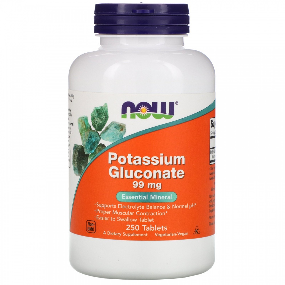 Биологически активная добавка Глюконат Калия – препарат известной американской компании NOW Foods, предназначенный для восполнения недостатка калия в организме. Именно он является одним из важнейших компонентов, который напрямую влияет на стабильную работу сердечной мышцы и сосудов. Дефицит калия может быть связан с регулярным употреблением алкогольных напитков, кофе, излишнего количества сахара, а также при применении мочегонных препаратов.