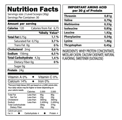В одной порции содержится 24 грамма белка и всего 133 калории, поэтому продукт подходит как для похудения, так и для наращивания мышечной массы. В состав входят натуральные вкусо-ароматические добавки и подсластитель сукралоза, отличающийся превосходным качеством и термостабильностью.
