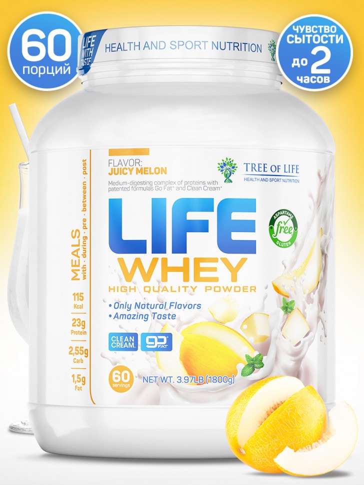 Лучший сывороточный протеин содержит 2 типа белка с высокой биологической ценностью, что поможет добиться максимальных результатов при достижении определенной цели. Смесь содержит весь комплекс важных для организма аминокислот, которые моментально поступают в мускулатуру для синтеза новой мышечной массы. Продукт повышает иммунитет, контролирует выделение инсулина, обладающего анаболическим действием, уменьшает выработку гормонов с катаболическим эффектом и дает необходимый запас энергии для тренировки. При похудении Life Whey поможет набрать требуемую дневную норму белка, а также станет удобным и питательным низкокалорийным перекусом. Порошок превосходно растворяется в жидкости без осадка и комков. Для употребления необходимо смешать 30 граммов смеси с 300 миллилитрами воды или молока. Прием следует осуществлять утром, до и после физических нагрузок 2-3 раза в день.