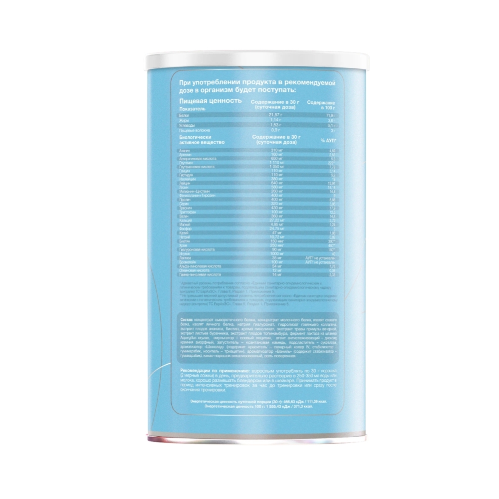 Рекомендации по применению: Развести одну порцию (около 30 г) в 250–300 мл воды или молока. Принимать утром, после тренировки или в качестве перекуса.