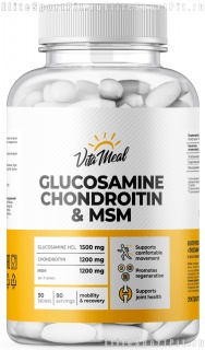 VitaMeal GLUCOSAMINE CHONDROITIN + MSM — это источник хондропротекторов глюкозамина, хондроитина и метилсульфонилметана (MSM) в таблетках.