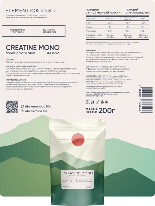 Интернет-магазин Body-Pit.Life предлагает купить Креатин ELEMENTICA Creatine Mono 200 гр в Нерюнгри.