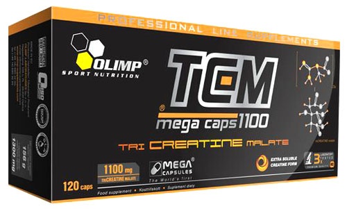 TCM MEGA CAPS содержит 1100 мг три-креатин малата в одной капсуле. Креатин малат является формой креатина, более растворимой и лучше всасываемой организмом, сохраняет стабильность более длительный период времени и более эффективно преобразуется в активную форму креатина чем традиционный моногидрат