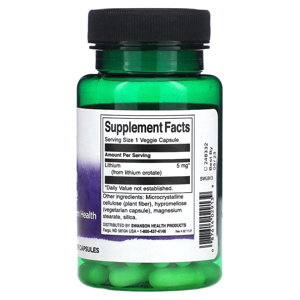 Литий Swanson Lithium Orotate 5 мг 60 капсул