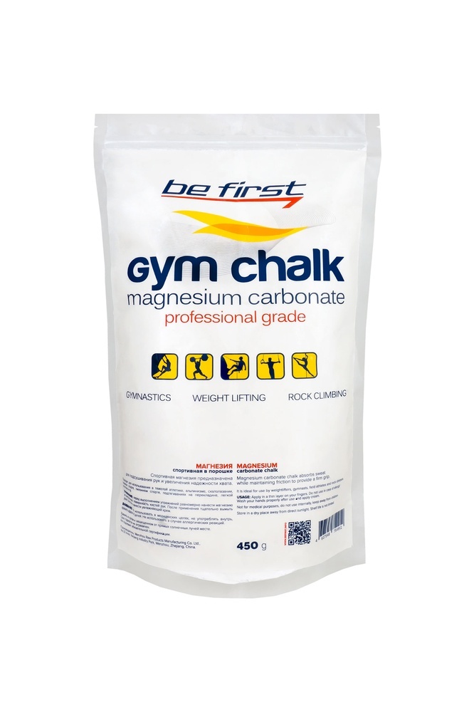 Магнезия Be First в новой упаковке позволяет расходовать это вещество более экономно, сберегая средства и реже заботиться о покупке новой порции. Также новая магнезия способствует сохранению чистоты в зале и бережет Вашу спортивную одежду и снаряжение от белых пятен. Новая упаковка значительно легче, чем банка или бутылка с жидкостью – ее можно положить в спортивную сумку и не беспокоиться о том, что она стала тяжелее. После вскрытия упаковки дойпак сохраняет герметичность, не позволяя магнезии рассыпаться и облегчая использование. Кроме того, всегда можно заказать пакет с необходимым для Вас количеством магнезии 100 г, 300 г или 450 г.