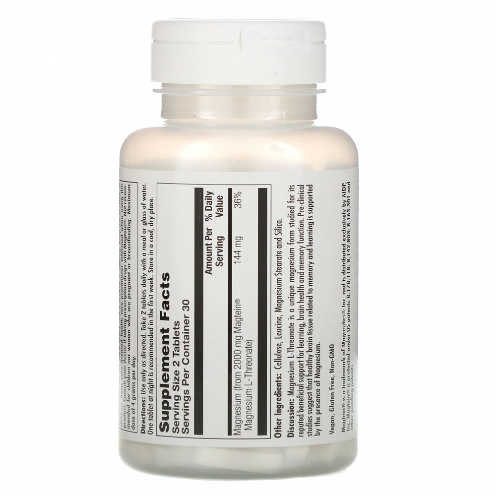 Магний (из 2000 мг магния L-треоната Magtein): 144 мг