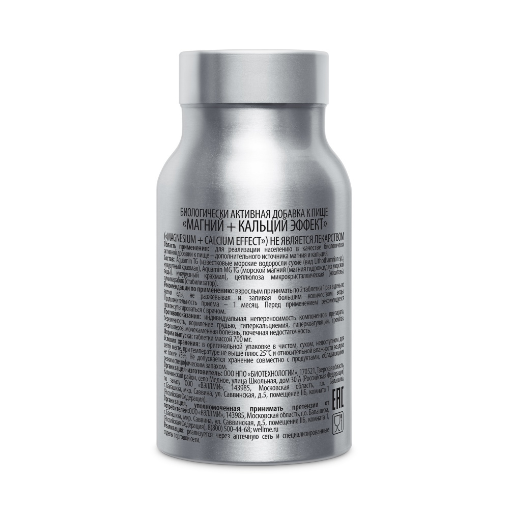 Магний + Кальций Эффект от WellMe - это дополнительный источник кальция и магния в биодоступной форме.