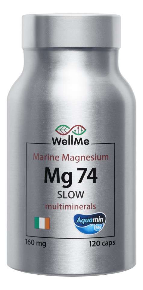 Биологическая активная добавка к пище WellMe Mg74 Slow Multiminerals от бренда WellMe — антистрессовый продукт, эффективно помогающий организму при стрессе, бессоннице, высоких физических и умственных нагрузках или общем напряжении. Обладает долгим накопительным действием. Цитратная форма натурального морского магния обеспечивает эффект расслабления мышц и нервной системы. А 73 микро- и макроэлемента усиливают и пролонгируют его действие.