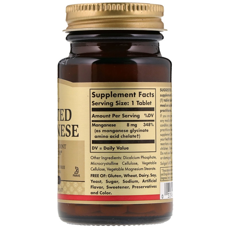 Марганец поддерживает здоровье костей и играет важную роль в здоровой работе суставов. Содержащие марганец ферменты необходимы для производства здорового хряща. Марганец также питает нервы и работает вместе с супероксиддисмутазой (СОД) в качестве антиоксиданта в клетках. Эта формула содержит патентованную форму хелатного марганца.