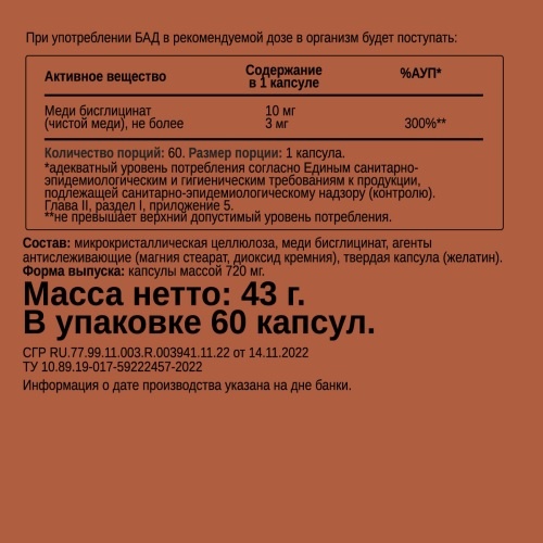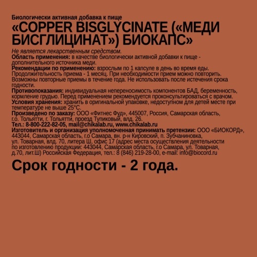 Витамины CHIKALAB Copper Bisglycinate 60 капсул