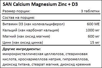 Витамины SAN Calcium Magnesium Zinc+D3 90 таблеток