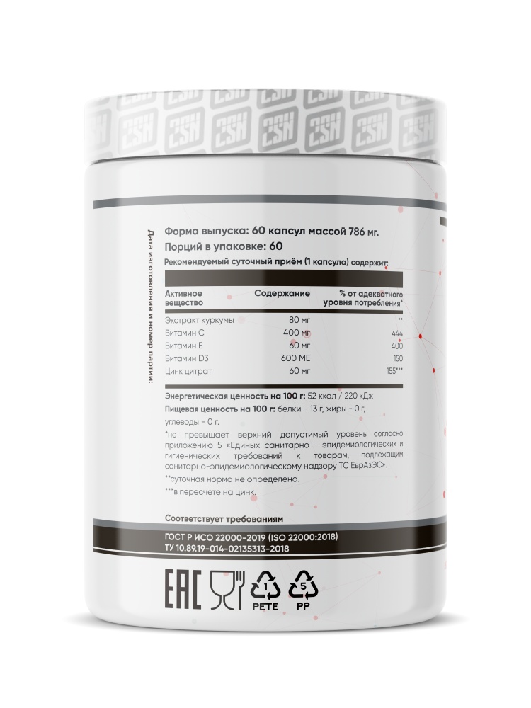 Экстракт куркумы: 80 мг