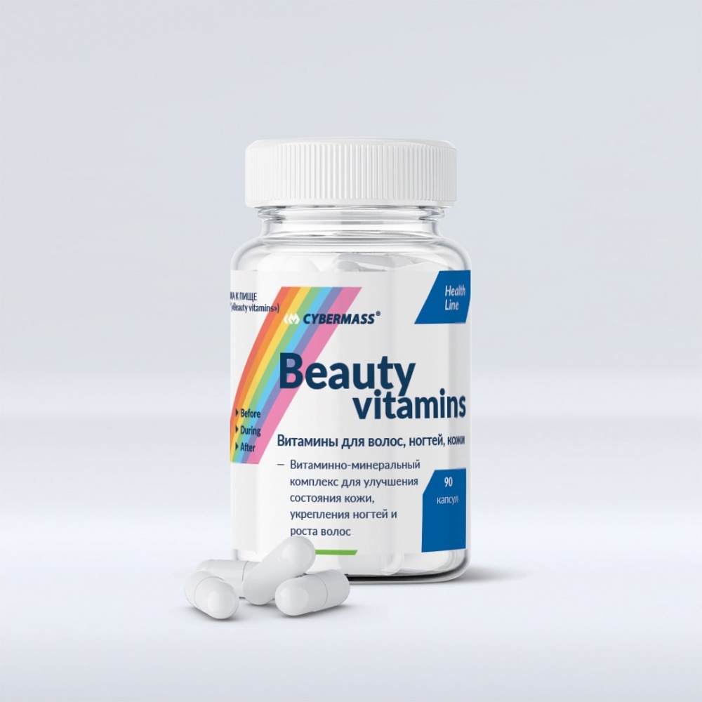 Витамины и минералы для волос, ногтей, кожи («Beauty vitamins») — витаминно-минеральный комплекс для укрепления ногтей и улучшения состояния кожи, роста волос. Снабжает организм ценными питательными и восстанавливающими нутриентами для поддержания естественной красоты изнутри. Витамин А улучшает регенерацию тканей, в том числе кожи и волосяных луковиц, снижает шелушение кожи. Витамин С нормализует обмен железа, укрепляет стенки сосудов, поддерживает в здоровом состоянии кожу. Витамин В5 ускоряет регенерацию. При недостатке этого витамина может нарушаться рост волос, появиться преждевременная седина. Витамин В6 поддерживает нормальное функционирование нервной системы, оптимальное состояние кожи, волос, ногтей. Витамин В7 способствует поддержанию оптимального обмена веществ в коже, волосах и ногтях. Цинк улучшает усвоение витамина А, стимулирует регенерацию кожи и волос. Селен — известный антиоксидант, помогает бороться со стрессом. Медь предупреждает кислородное голодание органов и тканей, укрепляет стенки сосудов. При ее дефиците возможно развитие ранней седины. Цистин укрепляет иммунитет, стимулирует умственную деятельность и память, улучшает цвет лица, укрепляет волосяные луковицы,предупреждая выпадение волос, устраняет их сухость и ломкость.
