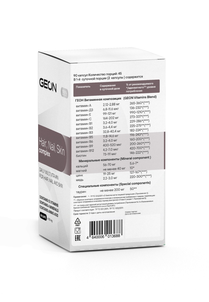 Витамины GEON Hair, Skin, Nails 750 мг 90 капсул