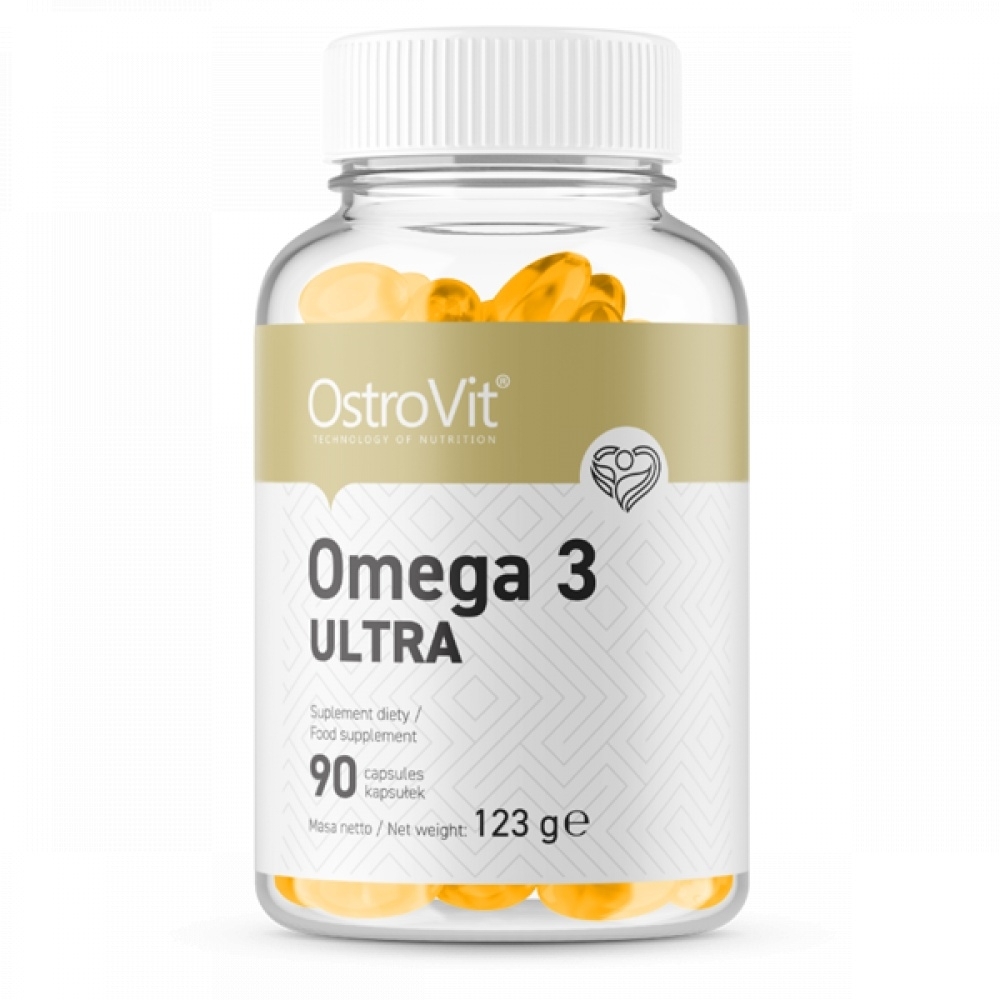 OstroVit Omega 3 Ultra - это полезная биологически активная добавка на основе рыбьего жира. Жирные кислоты определяют правильное зрение. Докозагексаеновая кислота (ДГК) является основным строительным блоком клеточных суппозиториев и пигментных мембран сетчатки, которые позволяют нам видеть ночное и цветное зрение. Следует помнить, что нервные клетки также построены из DHA. Эта кислота может влиять на рост нейронов, способствуя их большему разветвлению. Не следует забывать об этом в рационе беременных женщин из-за того, что он играет важную роль в развитии нервной системы у плода. Омега-3 Ультра был дополнительно обогащен витамином Е, который помогает защитить клетки от окислительного стресса. Эта добавка рекомендуется всем людям, которые хотят улучшить свое самочувствие и функционирование организма. Регулярное употребление Омега-3 способствует улучшению как физического, так и психического состояния организма.