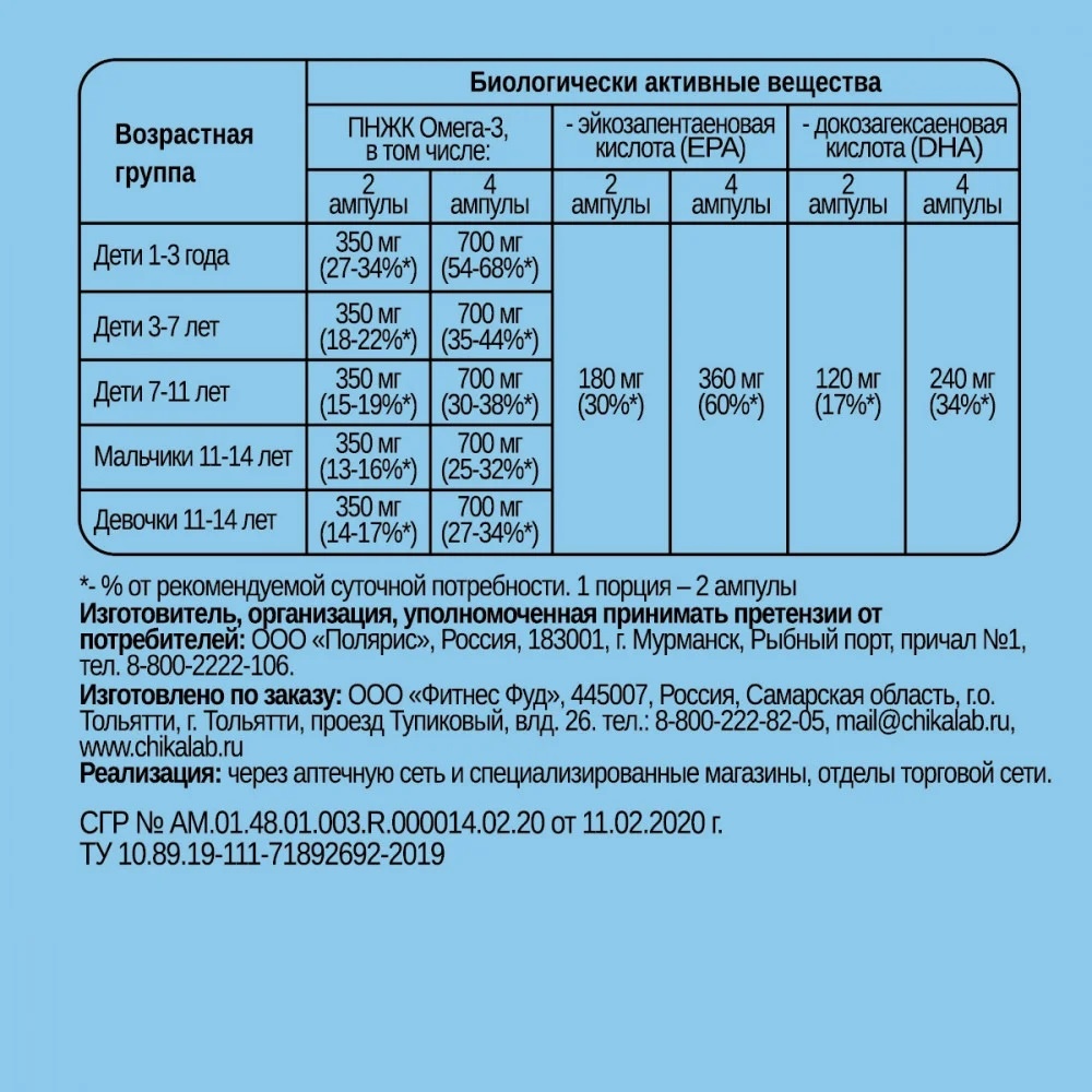 Дети 1-3 года 800 мг (ЭПК+ДГК)
