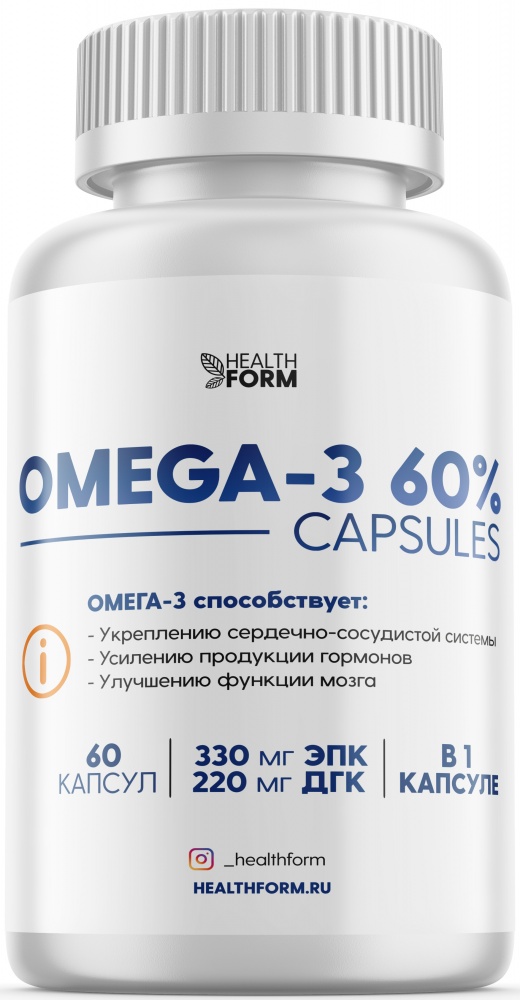 Если в вашем рационе питания недостаточно рыбы и морепродуктов, принимайте OMEGA-3 60% от HEALTH FORM курсами или на постоянной основе.
