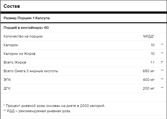 Омега-3 Премиум содержит высокую концентрацию EPA/DHA – 400/200 для общего здоровья организма, здоровья сердца и мозговой деятельности. Натуральный цитрусовый вкус сделает применение продукта еще более приятным, помогая избежать «рыбного» послевкусия.