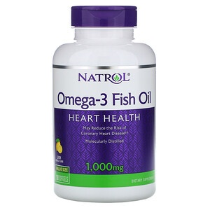 Natrol Omega-3 Fish Oil содержит натуральное лимонное масло, придающее приятный вкус. При регулярном приеме, рыбий жир Omega-3 улучшает работу сердца.