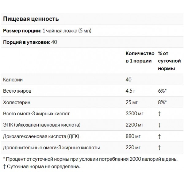 | Дополнительные омега-3 жирные кислоты: | 220 мг |