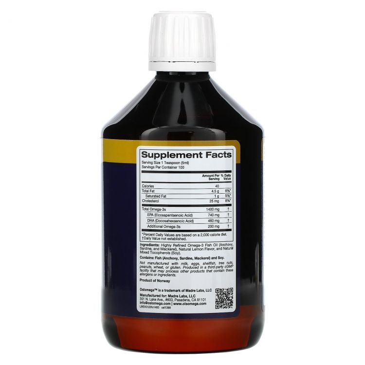 Интернет-магазин Body-Pit.Life предлагает купить Антиоксидант Oslomega Omega-3 Fish oil 1400 мг 500 мл в Нерюнгри.