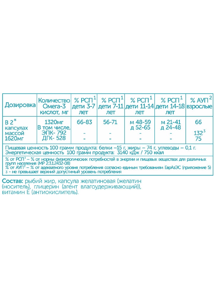 Всего омега 3: 1320 г
