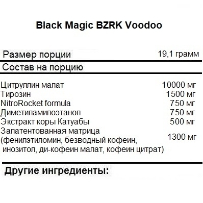 Интернет-магазин Body-Pit.Life предлагает купить Предтренировочный комплекс Black Magic BZRK VOODOO 475 гр в Нерюнгри.