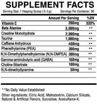 GABA + Choline Bitartrate – в сочетании эти компоненты оказывают релаксирующий эффект. Если быть точнее, происходит релаксация нервной системы, а не мышц. Отбрасываются все негативные, бытовые мысли (например, о роботе или учебе), что позволяет полностью сконцентрироваться на тренировке. ГАБА в отдельности имеет жиросжигающий эффект;