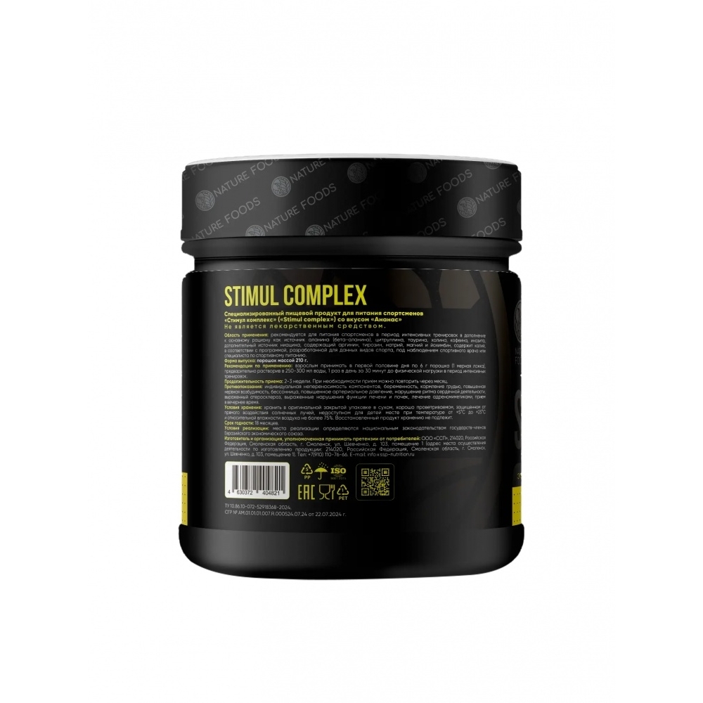 Nature Foods Stimul Complex – это современный предтренировочный комплекс, разработанный для повышения энергии, концентрации и выносливости во время тренировок. Сочетание активных компонентов стимулирует нервную систему, улучшает приток крови к мышцам и помогает достичь максимальной продуктивности.
