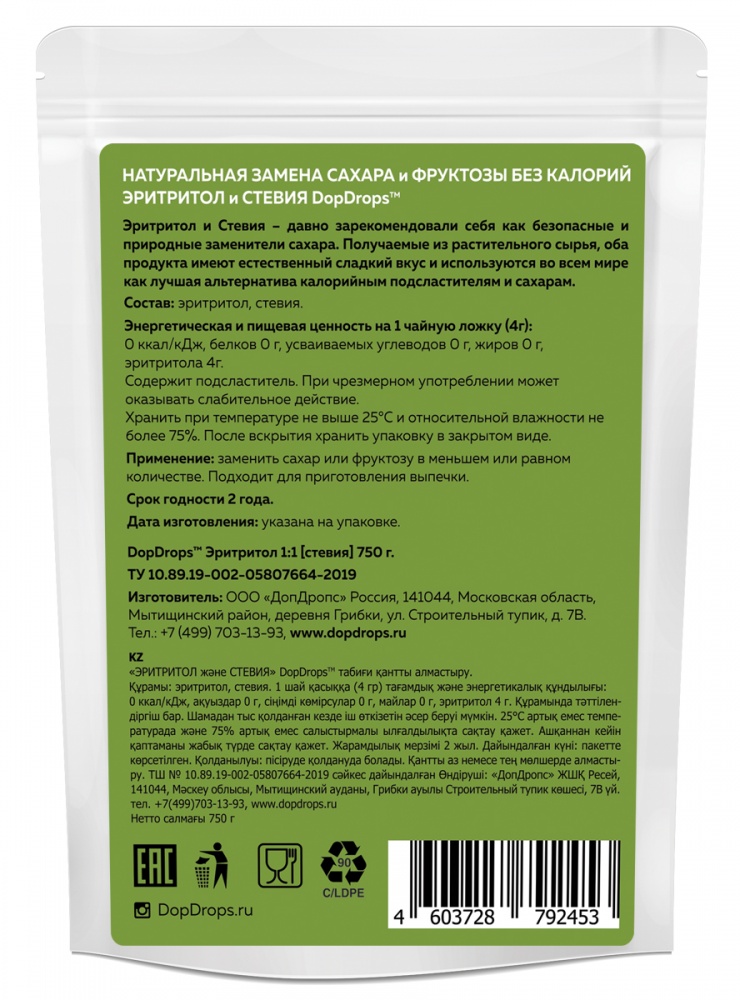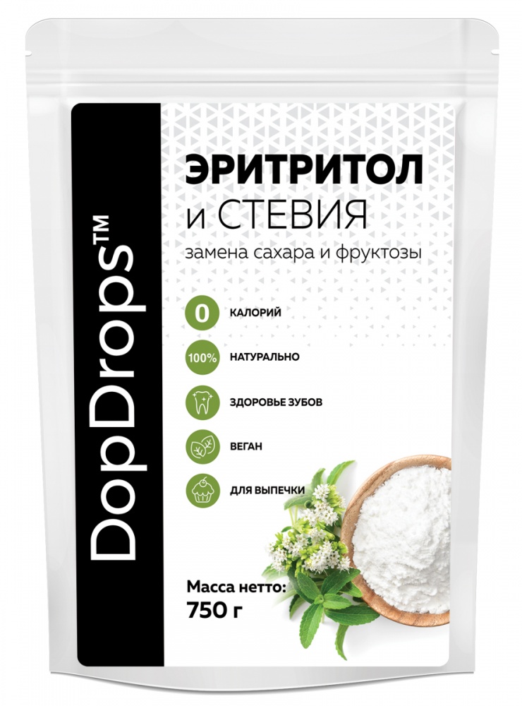 Интернет-магазин Body-Pit.Life предлагает купить Натуральный заменитель сахара DopDrops Эритритол 1:1 750 гр в Нерюнгри.