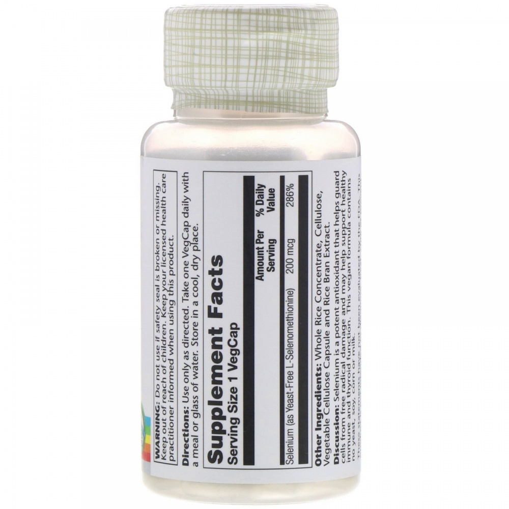 Селен является мощным антиоксидантом, защищающим клетки от повреждения свободными радикалами, и может оказывать поддержку иммунной системы и функции щитовидной железы. Растительная формула не содержит дрожжей, сои, кукурузы и молока.