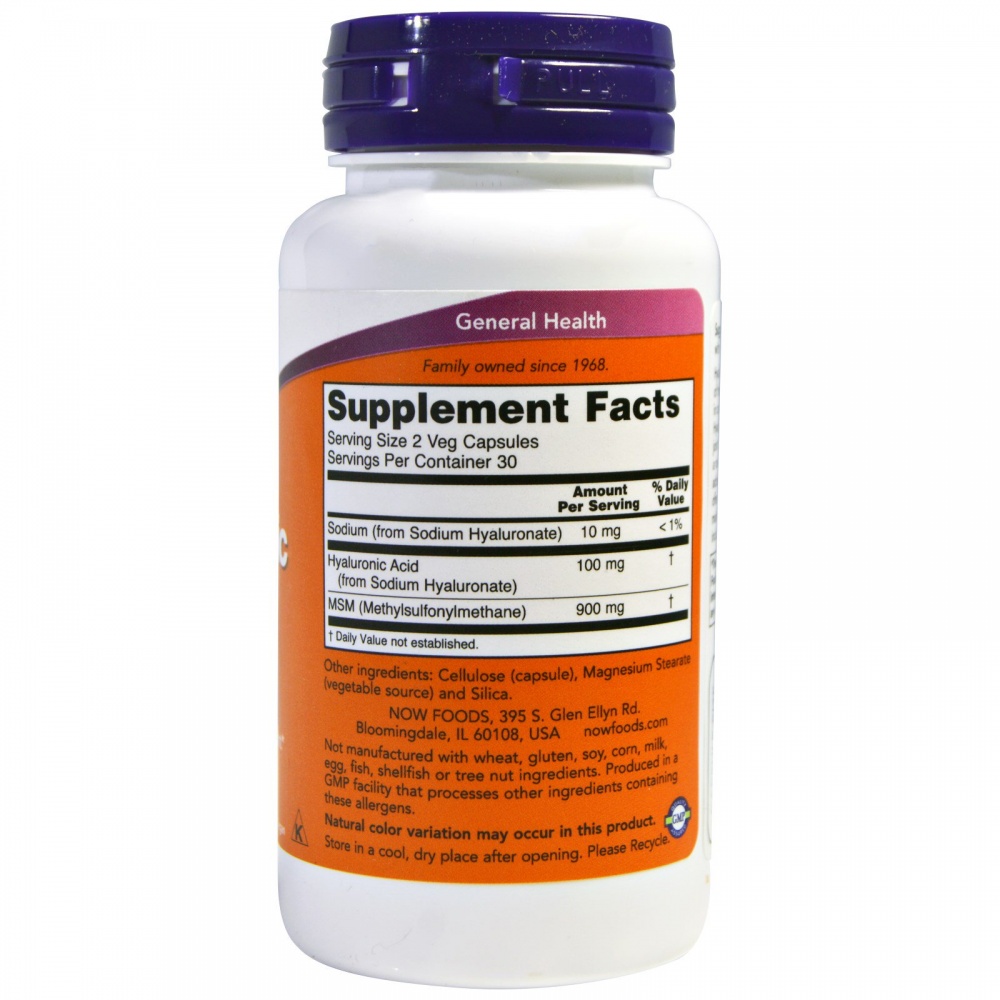 Гиалуроновая кислота — это соединение, которое присутствует во всех тканях организма, причем в наиболее высоких концентрациях оно находится в соединительной ткани (например, коже и хрящах). Гиалуроновая кислота является важной составляющей суставной жидкости, где она служит в качестве смазывающего вещества и обеспечивает сопротивление сжимающим силам. Метилсульфонилметан содержится в продукте в качестве природного соединения серы, обеспечивая химические связи, необходимые для формирования и поддержания прочности соединительных тканей в организме человека, в том числе тканей суставного хряща.