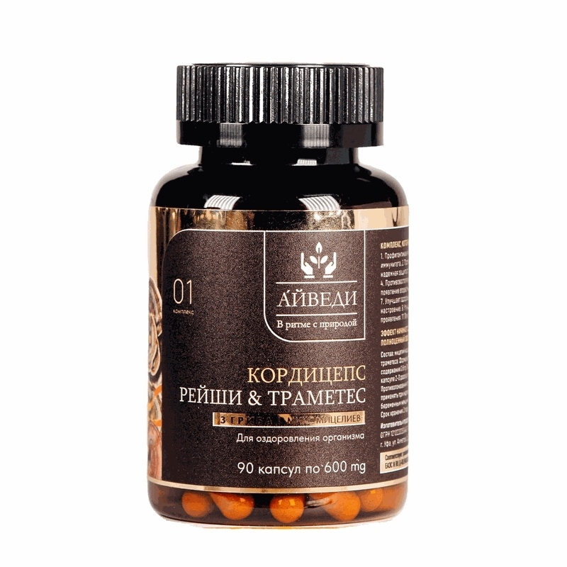 Специальный препарат Айведи Кордицепс Рейши + Траметес 600 мг 90 капсул