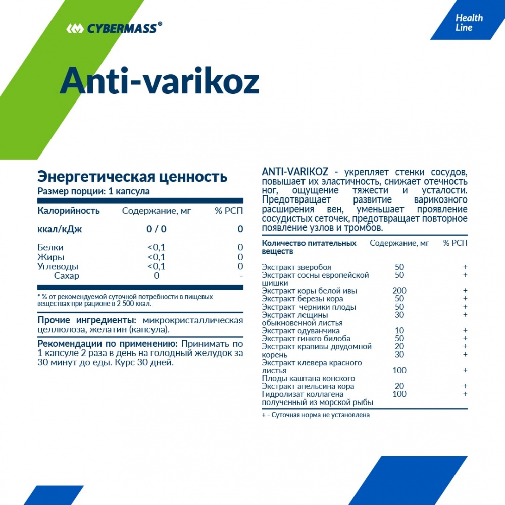 Интернет-магазин Body-Pit.Life предлагает купить Специальный препарат CyberMass Anti-varikoz 60 капсул в Нерюнгри.