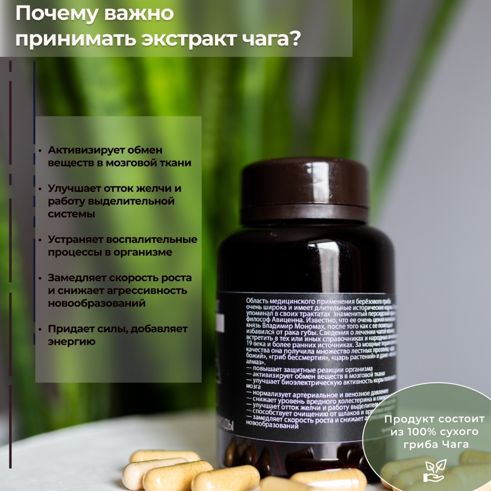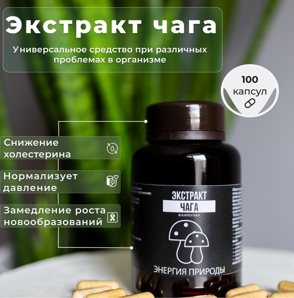 Специальный препарат Энергия Природы Экстракт Чага 100 капсул