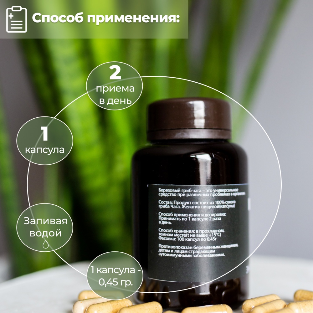 Состав: Продукт состоит из 100% сухого гриба Чага.