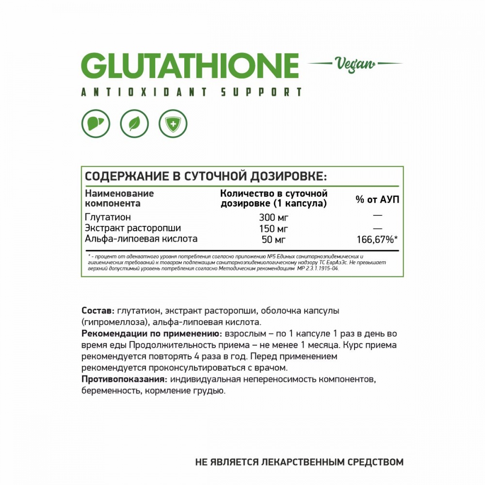 Специальный препарат NaturalSupp Glutathione 60 капсул