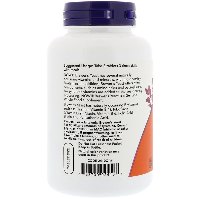 Пивные дрожжи от NOW содержат комплекс витаминов и минералов природного происхождения, преимущественно витаминов группы B. Кроме того, пивные дрожжи содержат и другие компоненты, такие как аминокислоты и бета-глюканы. Во время производства в дрожжи не добавляются синтетические витамины. Пивные дрожжи от NOW® — это натуральная цельнопищевая добавка.