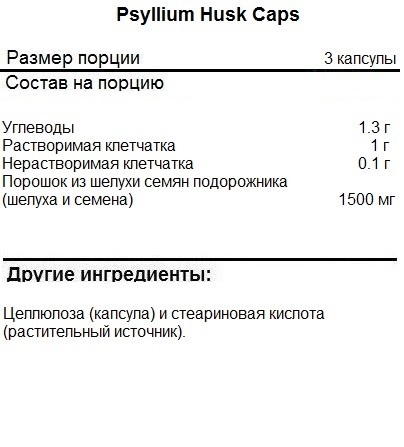 Порошок из шелухи семян подорожника (шелуха и семена): 1500 мг