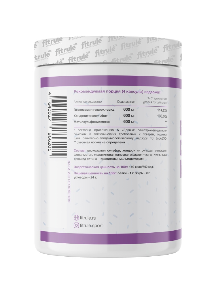 Интернет-магазин Body-Pit.Life предлагает купить Хондропротектор FitRule Glucosamine+Chondroitin+MSM 600 мг 120 капсул в Нерюнгри.