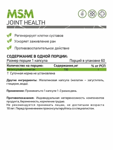 MSM - органическое серосодержащее соединение, обладающее противовоспалительным эффектом.