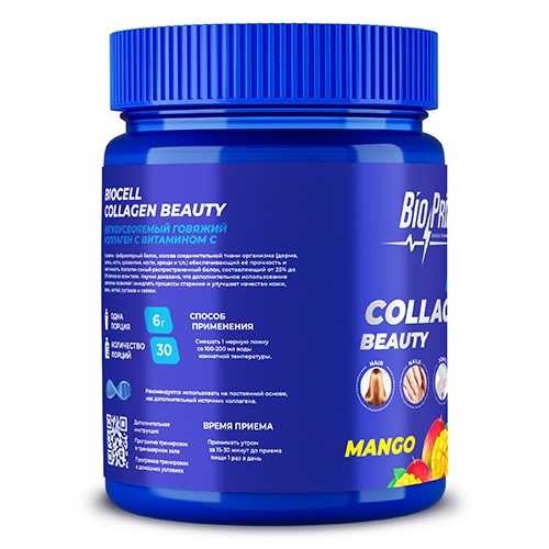Одна упаковка Bio Prime Collagen Powder со вкусом манго содержит 30 порций по 6 грамм каждая. Это достаточно для ежедневного приема коллагена в течение месяца.