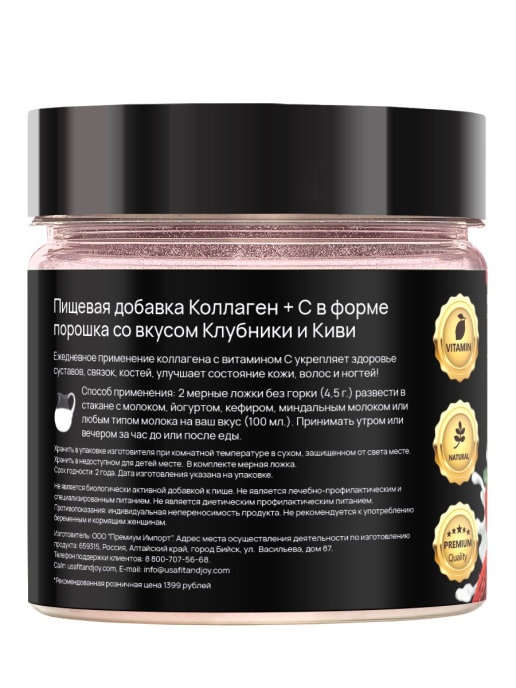 Collagen + C имеет высокую степень усвояемости, так как применяется в разведённом виде. 2 мерные ложки (4,5 гр) следует разводить в стакане с молоком, йогуртом, кефиром, миндальным молоком или любым типом молока на ваш вкус (100мл), не растворять в горячей воде.
