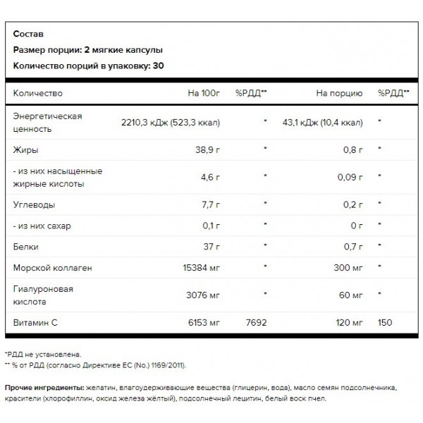 Размер порции: 2 мягкие капсулы