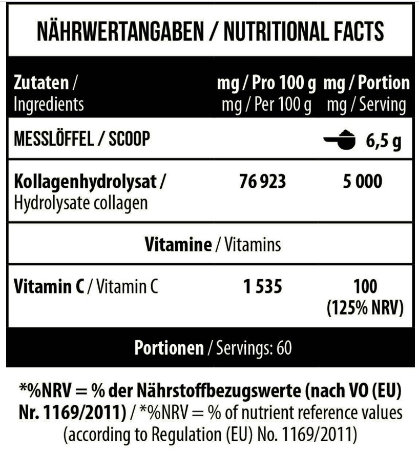 - содержит 5000 мг гидролизата коллагена в каждой порции;